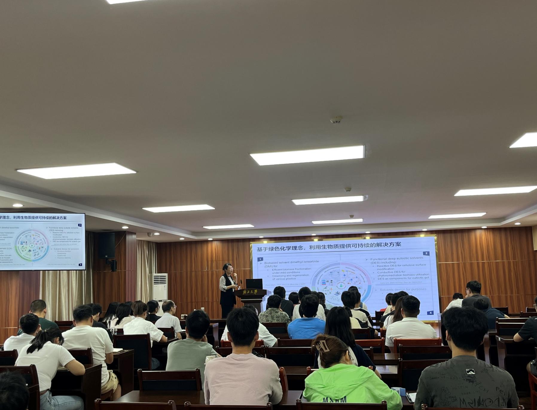 王蕾教授首先从生物质研究现状出发,阐述了绿色溶剂体系的开发与其在生物质炼制领域的应用,包括基于生物基溶剂异山梨醇二甲基醚(DMI)的生物质高效解构预处理技术,实现了木质素高脱除效率和高活性键含量的兼顾;反应型低共熔溶剂(DES)用于生物质纤维素组分提取和改性;基于导电DES体系的生物质预处理和溶剂回收工艺路线。同时王蕾教授讲解了DES体系的电化学性质,为DES体系在生物质炼制领域的应用提供新思路和工艺。最后王蕾教授提出了耦合化工过程模拟的前瞻性生命周期评价方法,为生物质精炼乃至更加广泛的固废资源化利用、绿色化工的可持续发展提供方法论和工具。报告结束,王蕾教授给大家介绍了西湖大学这所国家重点支持的民办新型研究型大学,西湖大学主要以博士研究生培养为起点,着力培养富有社会责任感的拔尖创新人才,目前正通过“申请—考核”制选拔非定向博士研究生,王蕾教授表示非常欢迎麻豆a片