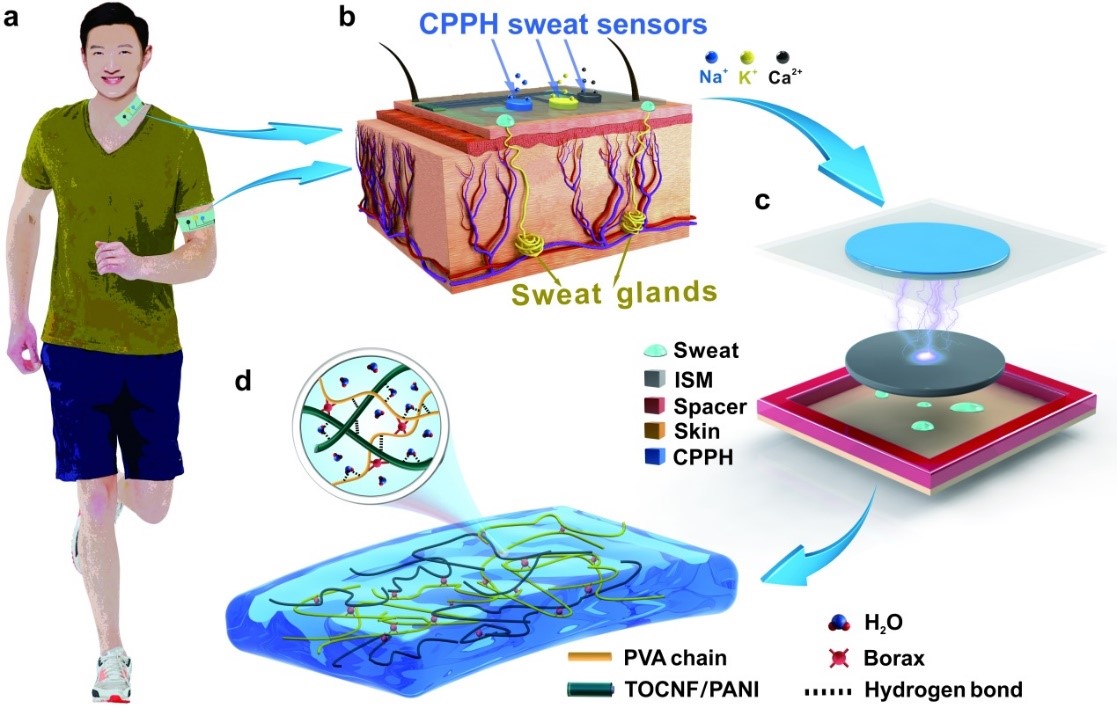 制糖工程专业2018级博士生秦影等人开发了一种可快速自愈合的纤维素基导电水凝胶电极,用于全柔性的自供电汗液传感器。通过选择性的捕捉汗液中的特定离子(钾、钙和钠离子),使其参与并调控运动能转化为电能的过程,实现了对人体状态的可视化实时监测。相关研究成果于2022年3月31日以题为“Stretchable Triboelectric Self-Powered Sweat Sensor Fabricated From Self-Healing Nanocellulose Hydrogels”在线发表于《Advanced Functional Materials》。论文链接//doi-org-s.vpn.apianmadou.com:8118/10.1002/adfm.202201846