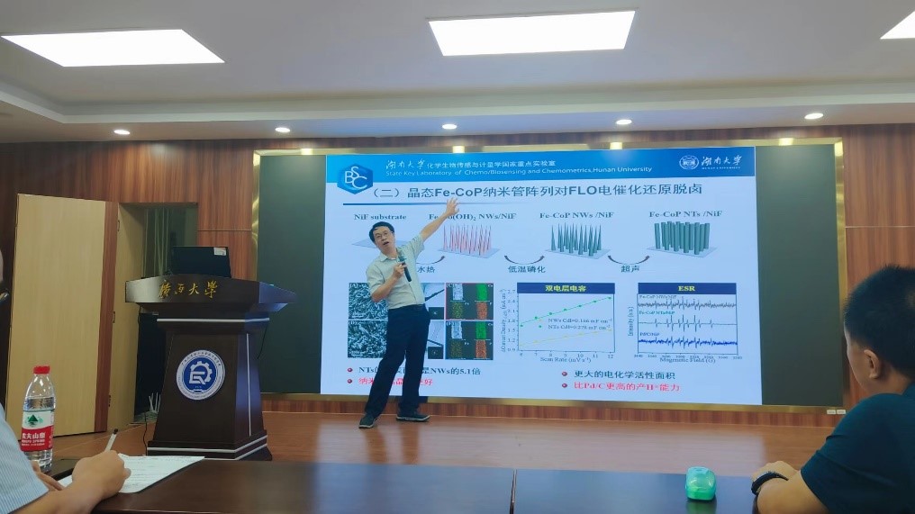 报告会上,刘承斌教授根据其多年的研究经验,系统地介绍了水体持久性污染物去除材料的工作原理、材料特点及应用前景。重点阐述了光催化的先进氧化技术在阻断生化处理过程中抗性基因表达的发展历程与应用,并通过分享其课题组近年来在该领域所取得的一系列科研成果,如光电化学催化处理抗生素废水、柔性电容器等,充分展现了水体持久性污染物去除材料的发展潜力和应用前景。报告会后,刘承斌教授与参会师生就水体持久性污染物去除材料与应用相关专业问题、团队师生培养等方面进行了沟通交流,对参会师生提出的问题进行了详细、专业的解答。