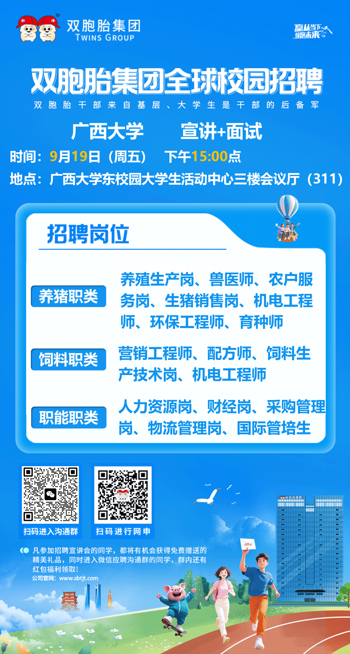 👉关注#双胞胎集团招聘#微信公众号,进行网申投递,提前锁定意向岗位。网申直达链接: