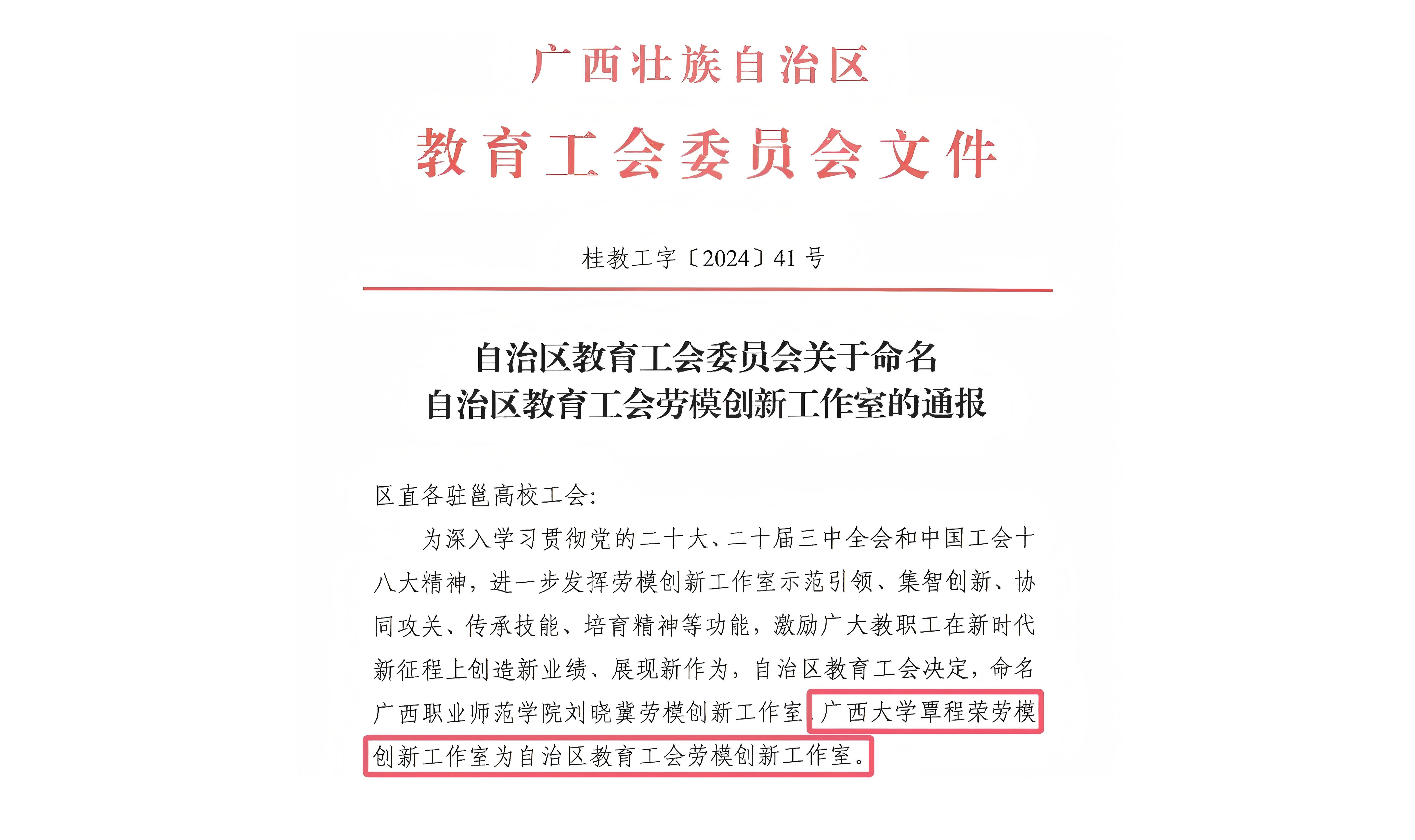 近日,从《自治区教育工会委员会关于命名自治区教育工会劳模创新工作室的通报》(桂教工字〔2024〕41号)获悉,麻豆a片