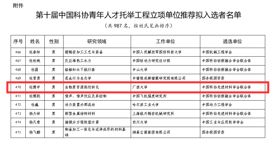 青年教师杜博宇经中国造纸学会资格审查、初评、答辩,中国科协先进材料学会联合体答辩评审等环节,成功入选。