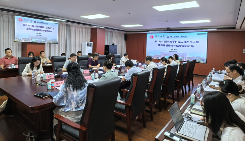 专家组通过审阅材料、听取汇报和深入讨论后一致认为:在新一轮建设周期,轻工技术与工程学科紧密围绕国家战略需求与广西特色产业发展,取得系统性突破—人才培养质量持续提升,教育教学改革成效显著;师资队伍建设实现质的飞跃,新增多位国家级高层次人才;科研创新能力显著增强,成功获批国家重点研发项目并荣获多项省部级科技奖励;社会服务成效突出,智库成果深度赋能林浆纸、制糖等特色产业转型升级。学科已全面高质量完成了第二轮广西一流学科建设的各项任务,建设成效十分显著,学科整体水平实现了跨越式的提升,一致同意通过终期评估。