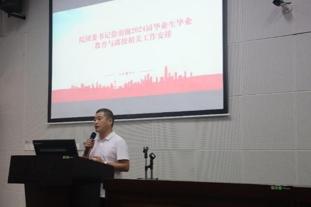 随后,院团委书记徐羽为毕业生们细致解读了离校前的各项事宜。他强调了毕业生登记表的重要性,并提醒大家务必按时提交,以免耽误后续流程。同时,他还详细说明了党员团员关系转移、个人档案处理、宿舍退宿等流程,确保每位毕业生都能有条不紊地离开校园。此外,徐羽老师还介绍了毕业晚会、毕业典礼和毕业证书的发放等安排,让毕业生们感受到了学院无微不至的关怀与温暖。