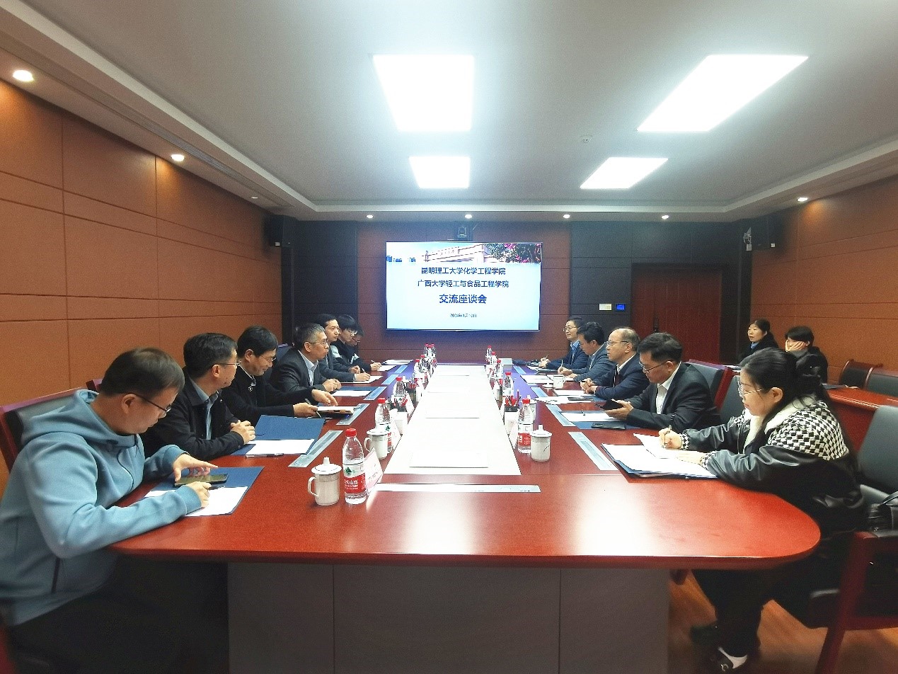 调研座谈。王双飞院士、院长覃程荣、副院长梁辰、副院长陆登俊、轻化工程系教师代表等参加了座谈会。座谈会由学院院长覃程荣主持。