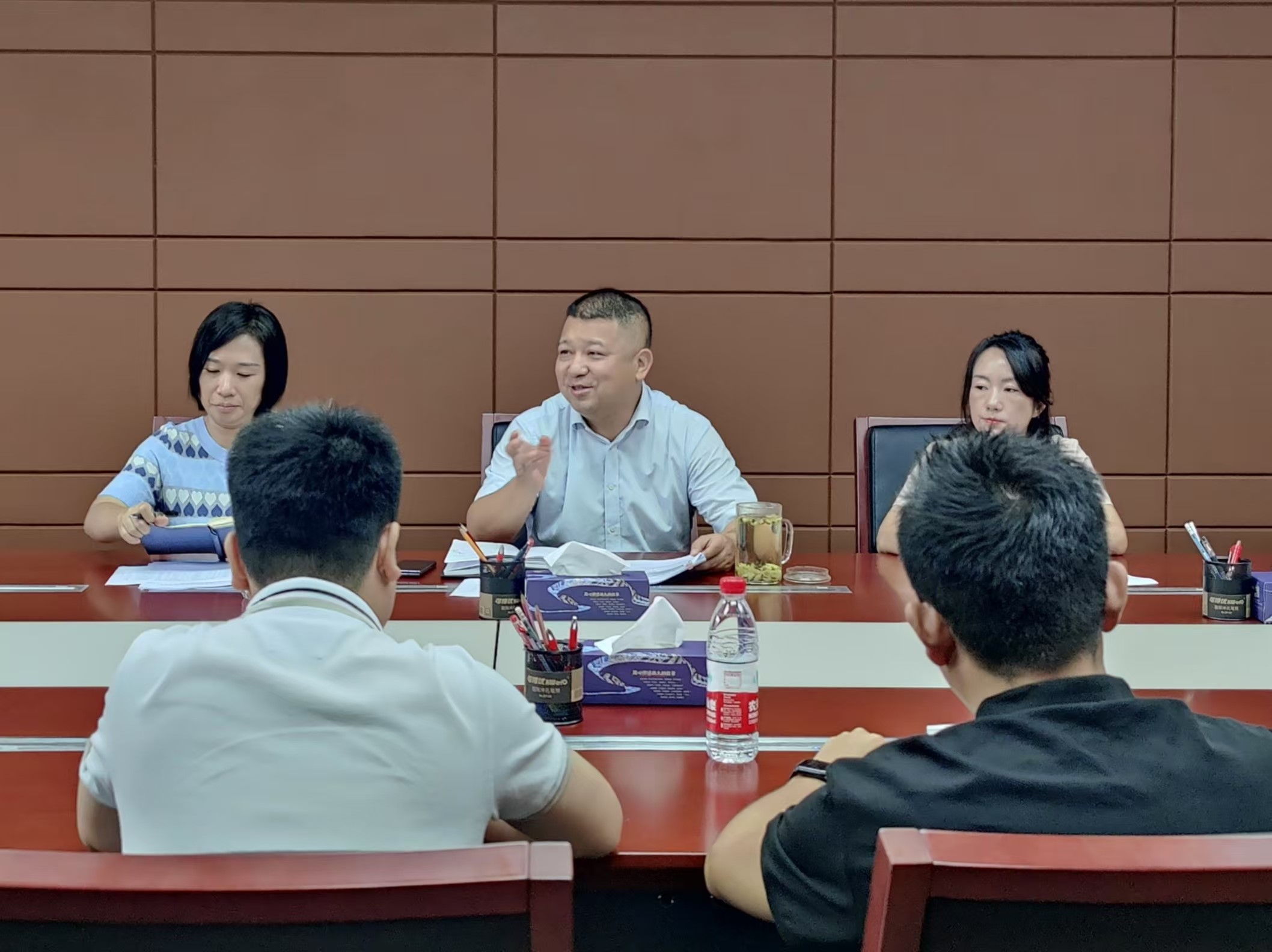 党委在学院204会议室开展“和书记聊思想”活动。学院党委书记姜玮主持本次活动,学院党委副书记、纪委书记孙玲,副院长胡天淑以及2024年新入职教师参加活动。