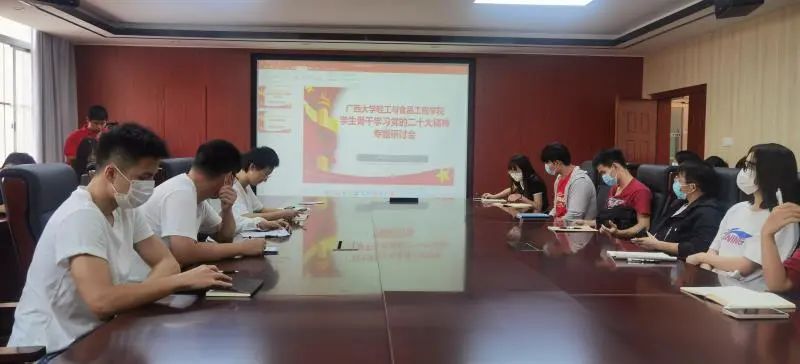 召开学生骨干学习党的二十大精神研讨会。学院全体辅导员、学生会轮值主席、研究生会轮值主席、党管会秘书长、新媒体中心主任以及各班班长参加了学习研讨会。