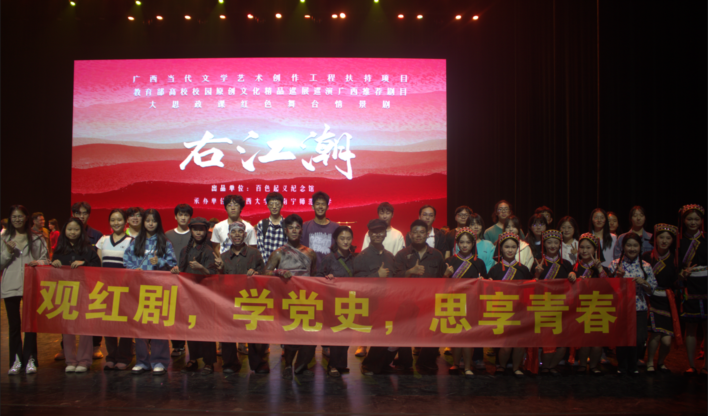 《右江潮》情景剧生动展现百色起义相关历史与广西特色红色文化,促进了历史教育与文化传承,增强民族文化认同感。观众被英雄事迹打动,激发了爱国情怀与精神共鸣,这是一场入心的思政课。