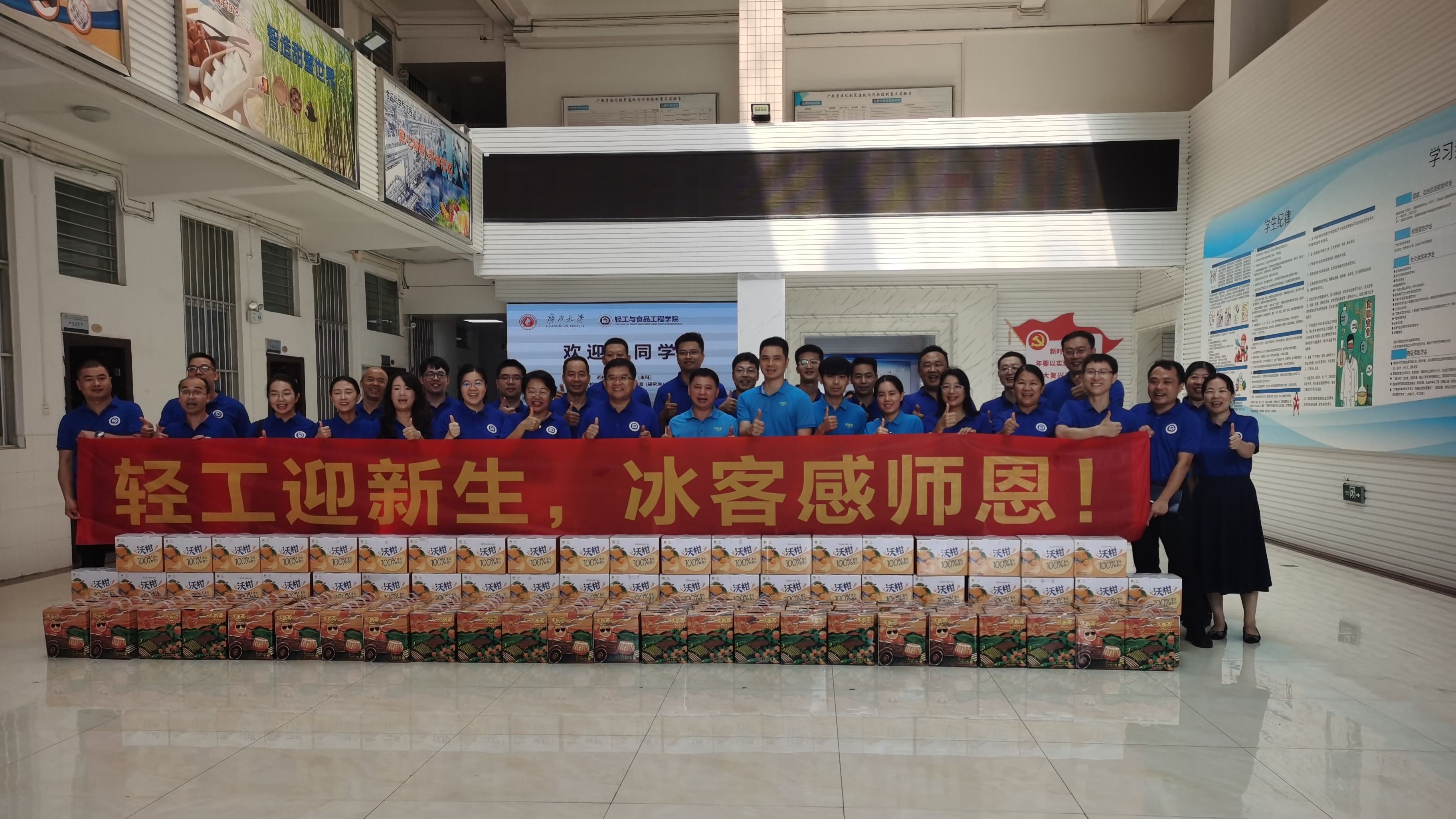 教职工教师节快乐,向学院赠送果汁饮料,为学院教职工和新生送去祝福和关怀。