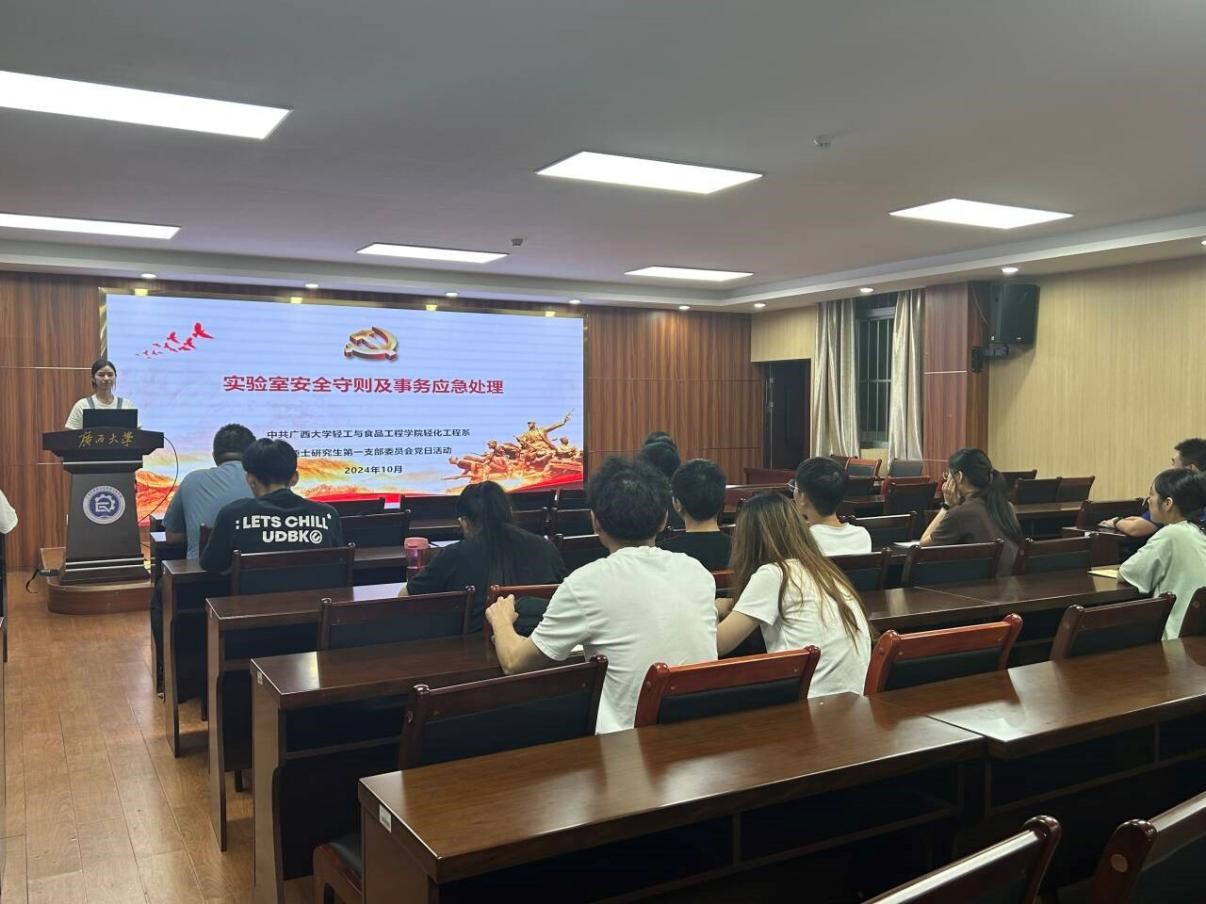 各教工党支部主要以“制度学习+实践引领”为双轮驱动开展活动。机关教工党支部组织专题学习研讨会,深入研读学校实验室安全专项整治工作的相关文件,明确行政人员在实验室安全管理中的职责与要求。食品教工支部、制糖教工支部及轻化工程系教工党支部等主要围绕实验室安全规章制度、危险化学品管理、紧急事故应对措施等关键议题展开深入研讨,进一步强化了党员教师的安全责任意识。各学生党支部则通过理论微课、案例分享等形式,深入学习了高等学校实验室安全规范和消防安全管理规范,以及《麻豆a片