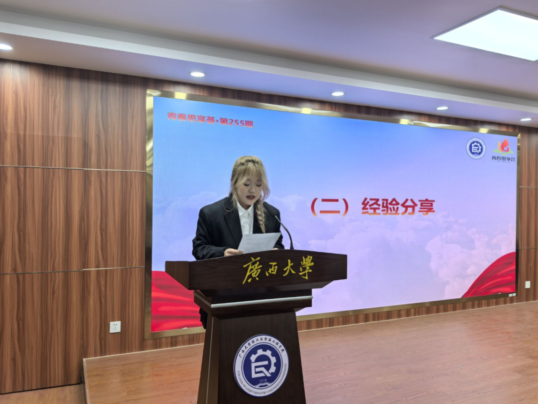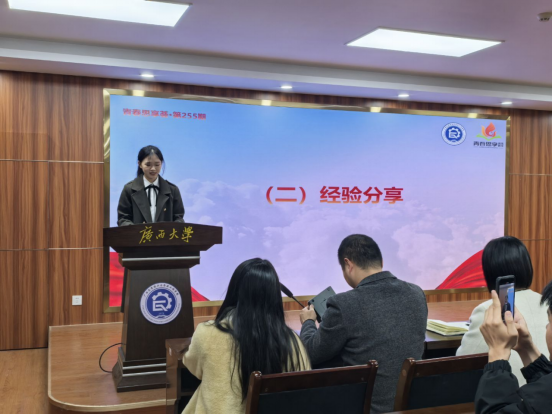 会议伊始,徐羽、卓能聪、刘宇三位老师为获奖学生颁发荣誉证书,并一同合影留念。随后,轻工242班张文静、李礼迎,24级研究生3班陈楚璇、张婉婷分别结合自身实践经历,分享他们在社会实践中的宝贵经验和深刻感悟。