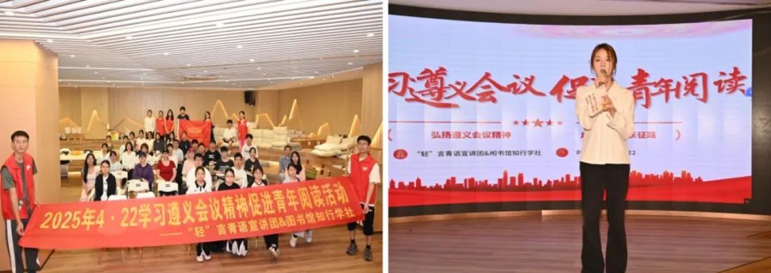 “轻”言青语宣讲团联合图书馆知行学社特别策划开展了“学习遵义会议精神,促进青年阅读”主题活动。活动通过情景剧再现、专题宣讲、知识竞赛等创新形式,让红色教育真正“活”起来、“动”起来、“火”起来。