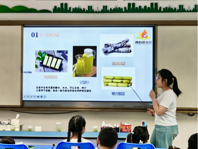 在甘蔗新品种培育、关键种植技术研发等方面的亮眼成果,并创新借助“彩虹糖色素扩散”趣味实验,将抽象的农业科学原理直观呈现,色彩斑斓的实验现象瞬间点燃了同学们的求知欲,让大家在惊叹中感受到了农业科学的独特魅力,也深刻认识到蔗业、糖业对国计民生的重要性。