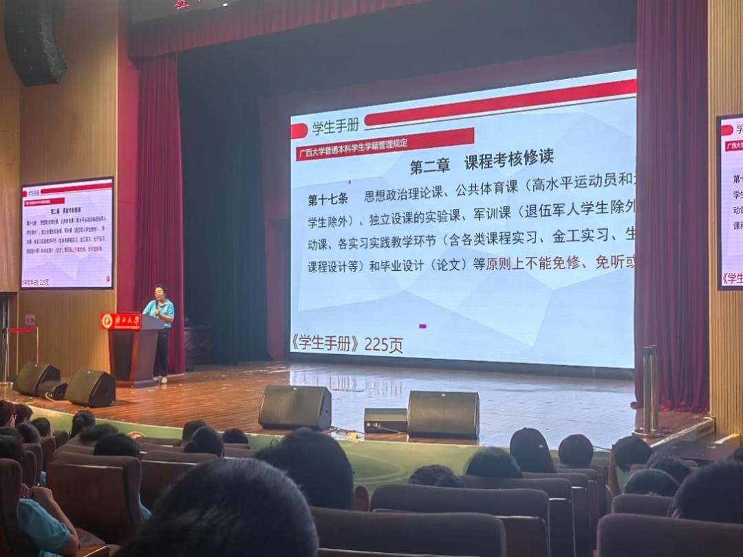 帮助级新生了解校纪校规、树立纪律意识、规范日常行为,9月18日下午,麻豆a片 在大学生活动中心小剧场举办《麻豆a片 学生手册》学籍管理相关文件学习会会议由学院副院长林莹主持,2025级全体本科新生参与。