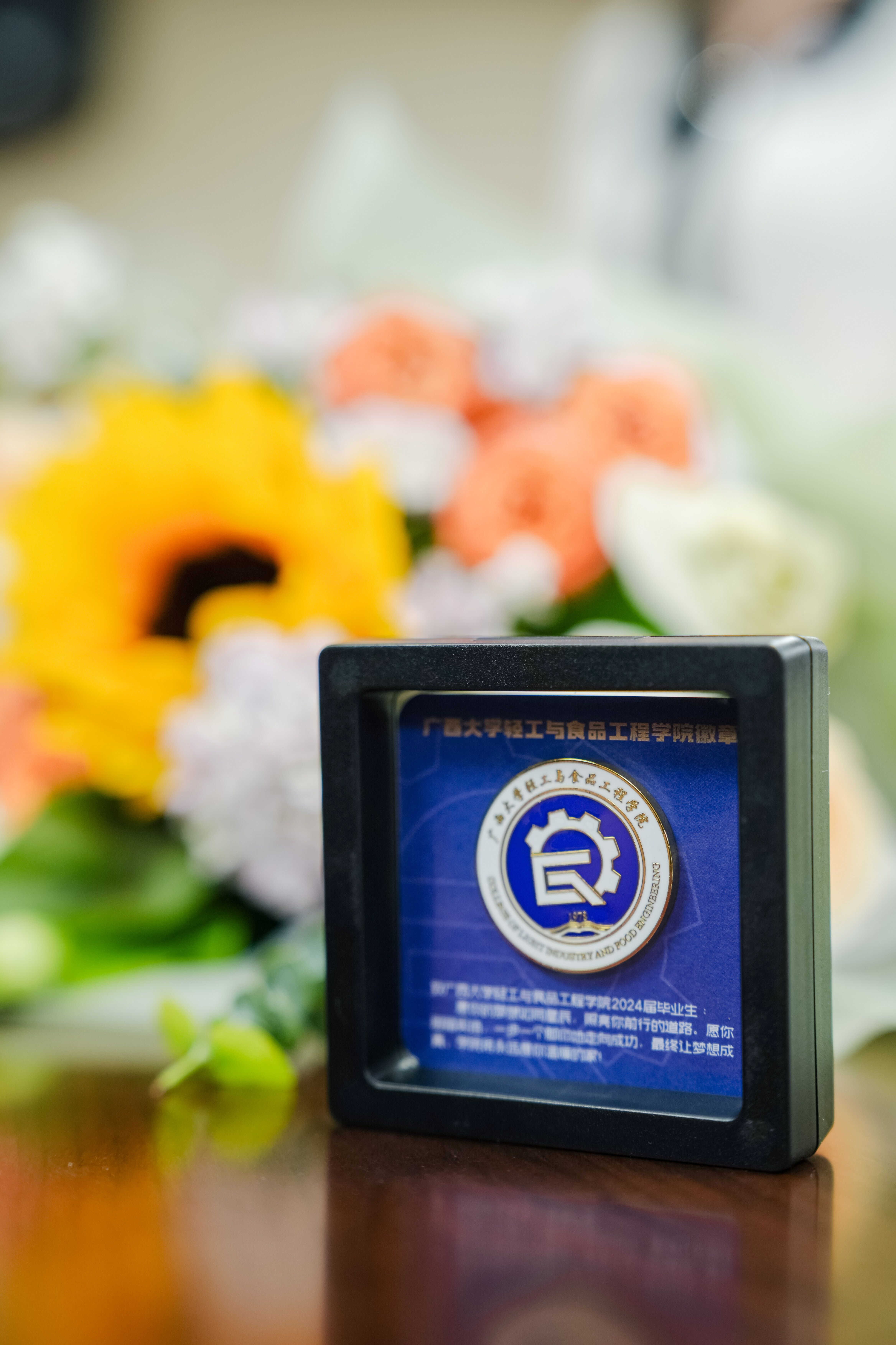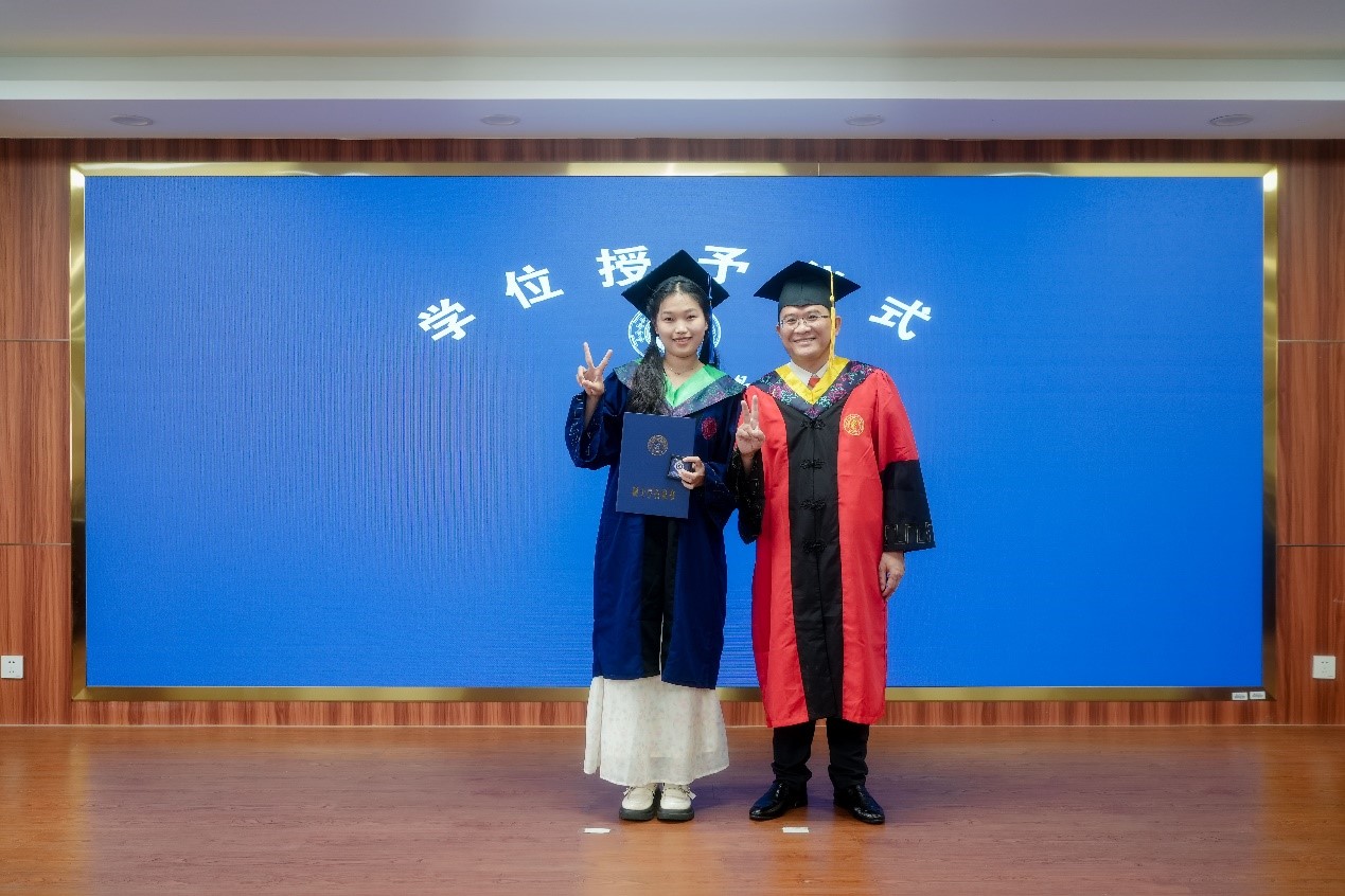 随后,覃程荣院长庄重地为每一位毕业生授予学位,行拨穗礼,并赠予学院徽章。这一刻,不仅象征着毕业生们圆满完成了学业,更预示着他们即将踏上崭新的人生旅程,开启辉煌的未来篇章。