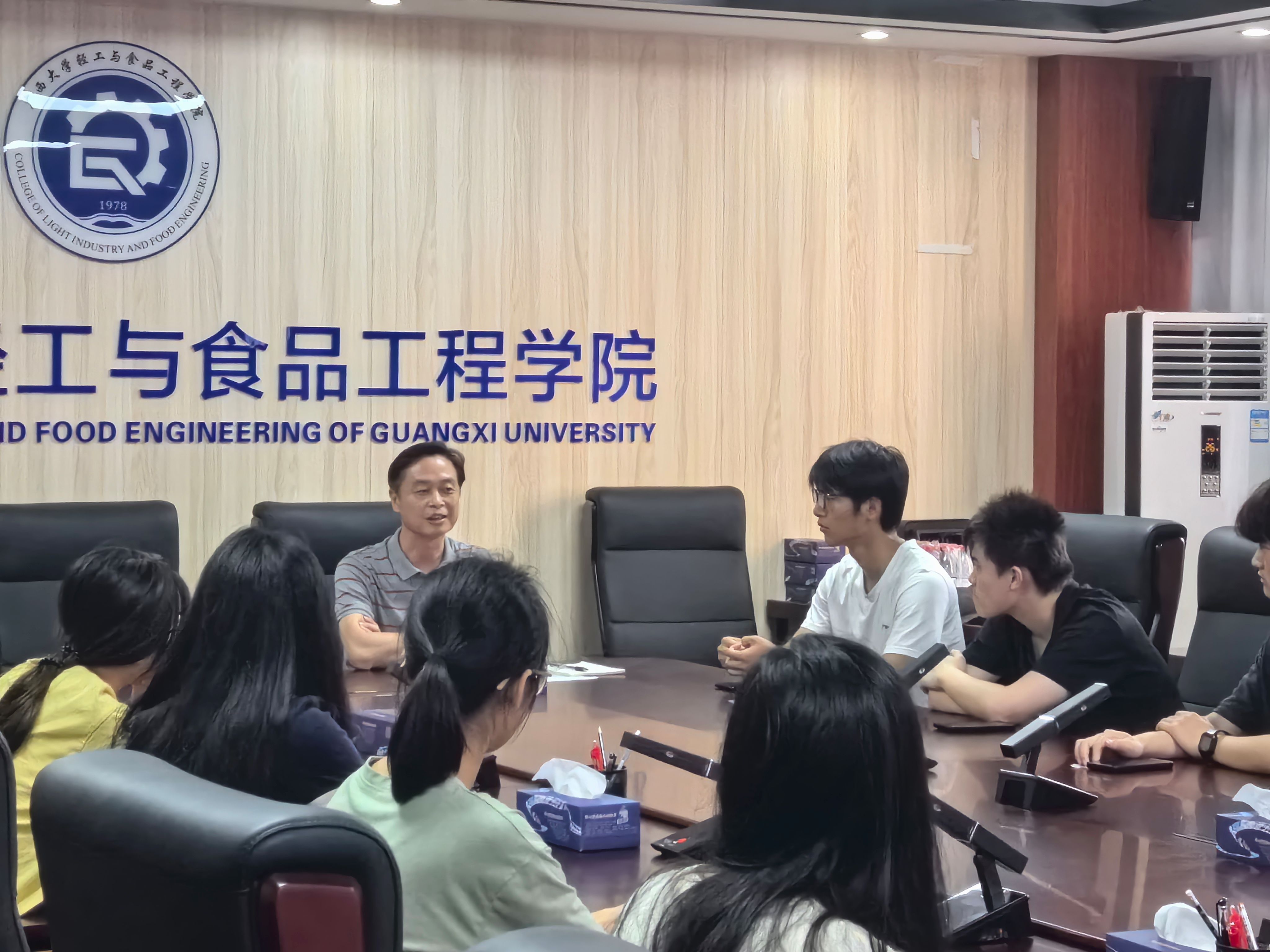 随后,参会同学结合专业背景依次发表所思所想。其中,韦新宇同学表示,习近平总书记的寄语使其深受鼓舞。新时代中国青年生逢其时,重任在肩,不仅是时代的见证者,更是时代的参与者、创造者。作为一名“糖人”,会牢记习近平总书记的殷殷嘱托,勇立鸿鹄之志,为促进广西糖业发展贡献出自己的一份力。
