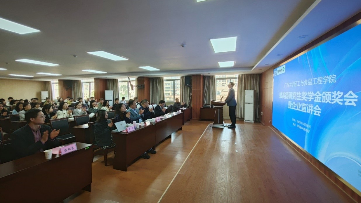 党委副书记、院长覃程荣出席会议并总结发言。维美德(中国)有限公司中华西区人事专员林丹敏,奖学金负责人陈娴及轻化工程系专任教师参加了颁奖仪式。