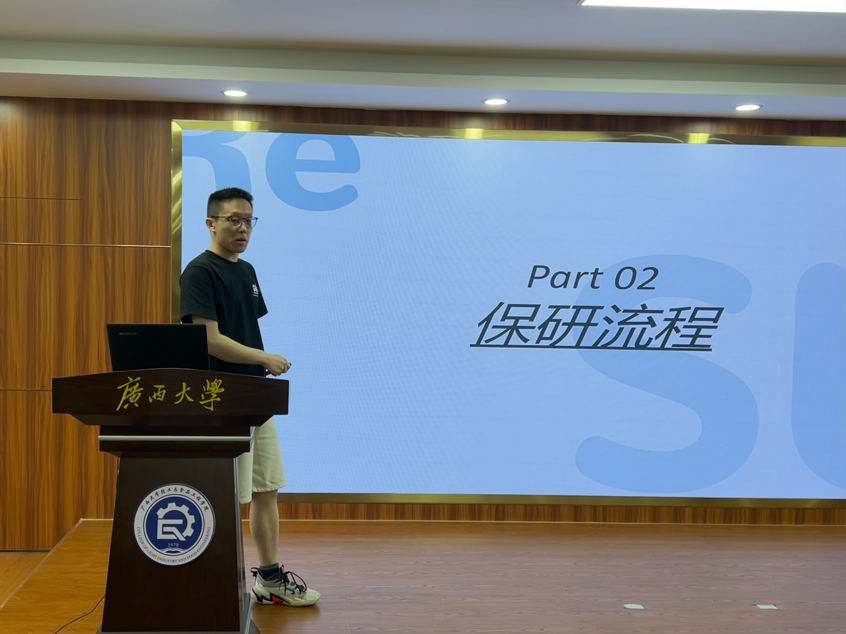 优秀共青团干部”等荣誉称号。他从推免的流程、自我定位、目标院校选择、精准定位和保研资料整理等几个方面为同学们提供了保研经验指导。