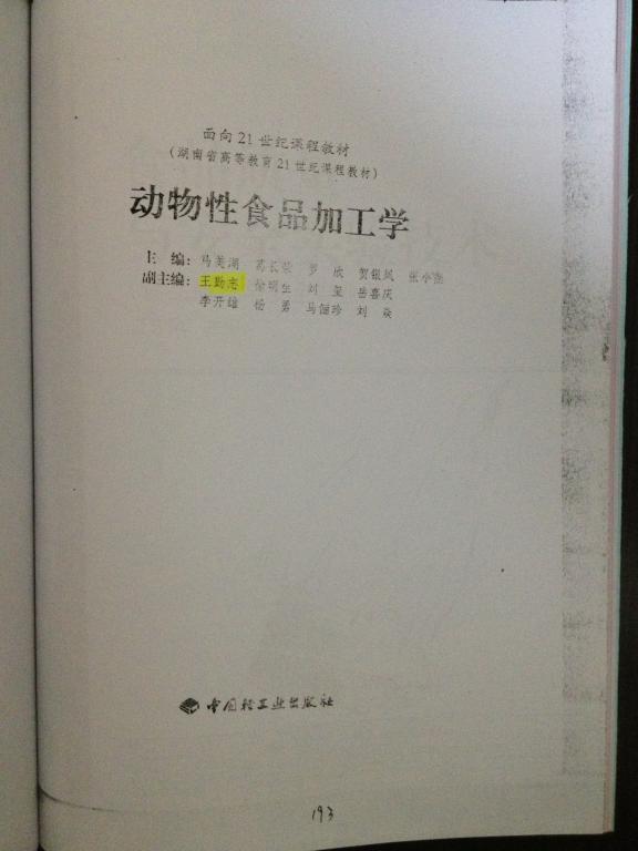 6. 《动物性食品加工学》(中国轻工业出版社)