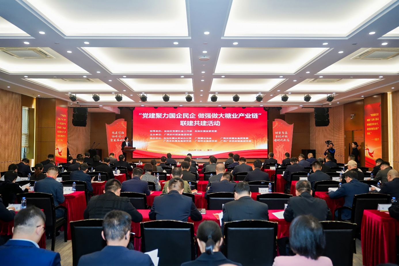 2025年12月16日上午,自治区党委社会工作部、自治区国资委党委联合举办的“党建聚力民企国企 做强做大糖业产业链”联建共建活动在南宁隆重举行。活动受到自治区党委、政府高度重视。自治区党委社会工作部部长、“两新”工委书记唐轶昂结合学习党的二十届四中全会精神在会上强调发挥党组织在糖业产业链上的政治引领与资源整合作用,推动国企、民企、高校、科研院所党组织联建共建、聚势赋能,着力破解产业发展难题,切实把党的组织优势转化为推动产业升级的发展胜势,将习近平总书记“做强做大广西糖业”的殷切嘱托落到实处、干出实效。